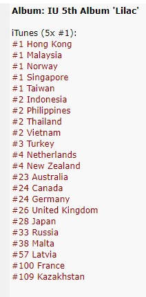 Iu Support Team On Twitter Album Iu 5th Album Lilac Itunes Almost To Do It 2 Indonesia 2 Saudi Arabia 2 Thailand 2 Turkey 2 Vietnam 3 United States 3 Ireland 4